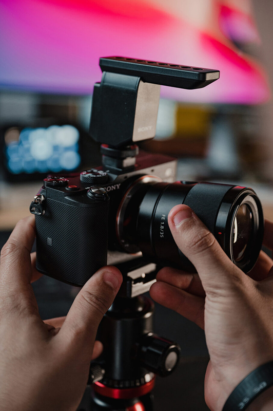 With an 11mm (35mm full-frame equivalent: 16.5mm) focal length for ultra-wide images and a large F1.8 maximum aperture for deep bokeh, this lens will let you capture your whole streaming setup.